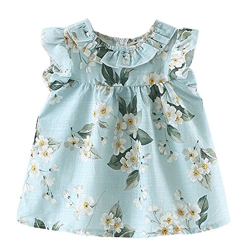 Plus Nao(プラスナオ) ノースリーブワンピース ミニワンピース 花柄ワンピース Aラインワンピース 子供服 女の子 女児 キッズ KIDS フリル ライトブルー 70-80
