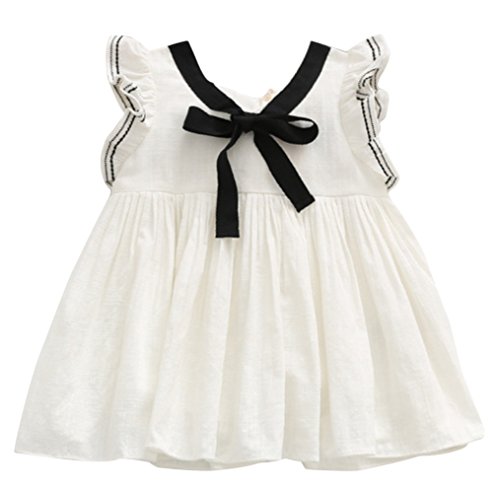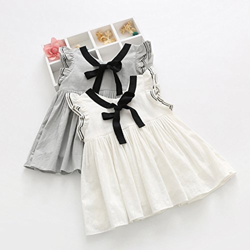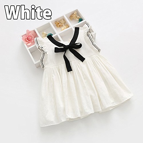 Plus Nao(プラスナオ) ワンピース 子供用 キッズ リボン かわいい 半袖 夏 パーティ ドレス おめかし フリル ギャザー おでかけ 行事 ホワイト 100cm
