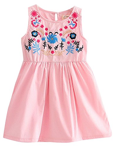 ワンピース 子供服 女の子 ガールズ キッズ 夏 ノースリーブ 花柄 刺繍ホワイト ピンク お出かけ 100cm 110cm 120cm 130cm 140cm