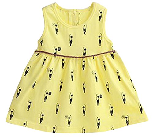 Plus Nao(プラスナオ) ワンピース ノースリーブ 猫柄 丸首 子供 キッズ ジュニア 女の子 女児 かわいい 73cm 80cm 90cm 100cm 110cm 120cm イエロー 110cm