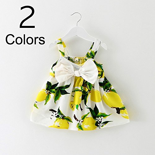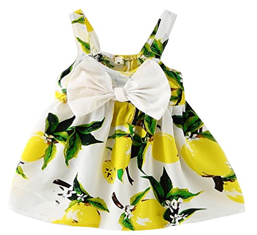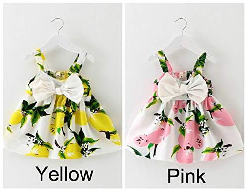 子供用、ノースリーブワンピースです。 大きなリボンとレモン柄が可愛らしいです。(サイズについて)【90】着丈:42cm、胸囲:46cm 【100】着丈:45cm、胸囲:48cm 【110】着丈:48cm、胸囲:50cm 【120】着丈:51cm、胸囲:52cm(素材について)綿混