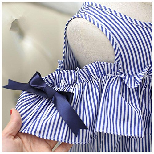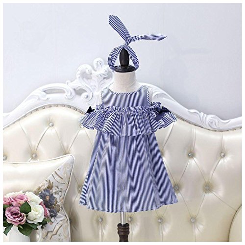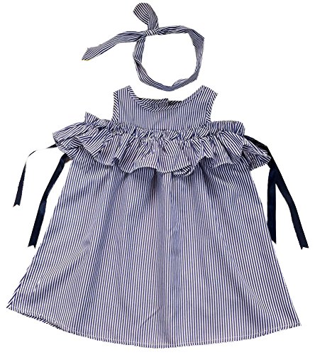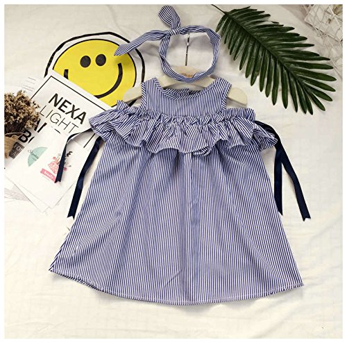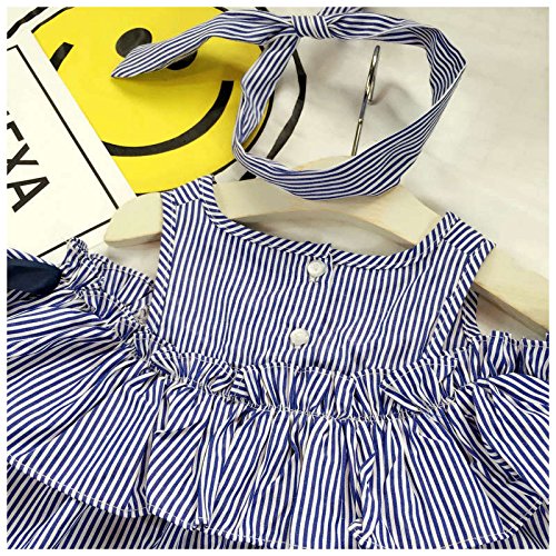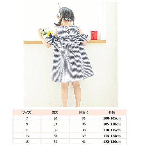 ノースリーブワンピース ミニワンピース ヘアバンド付き カチューシャ付き 子供服 夏 女の子 女児 小学生 キッズ KIDS ミニ丈 オープンショルダー 半袖 ストライプ柄 リボン フリル 可愛い ガーリー