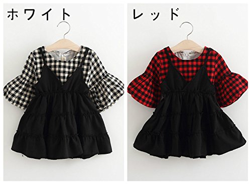 Plus Nao(プラスナオ) ワンピース バルーンスリーブ バルーン袖 チェック柄 重ね着風 フレアスカート ふんわり かわいい 子供 キッズ ジュ ホワイト 85cm