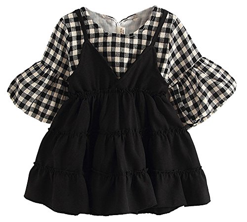 ワンピース バルーンスリーブ バルーン袖 チェック柄 重ね着風 フレアスカート ふんわり かわいい 子供 キッズ ジュニア 幼児 女の子 ガール 女児 おしゃれ 夏