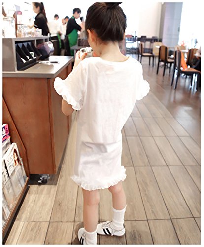 Plus Nao(プラスナオ) ミニワンピース フリルワンピース Tシャツワンピース 子供服 女の子 女児 小学生 キッズ KIDS 半袖 ロゴプリント 白 ホワイト 120