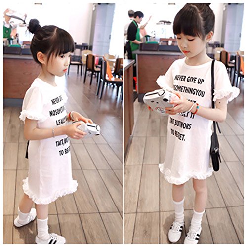ミニワンピース フリルワンピース Tシャツワンピース 子供服 女の子 女児 小学生 キッズ KIDS 半袖 ロゴプリント 白 ラウンドネック フリルスリーブ モノトーン カジュアル 可愛い ガーリー 100 110 120 130 140