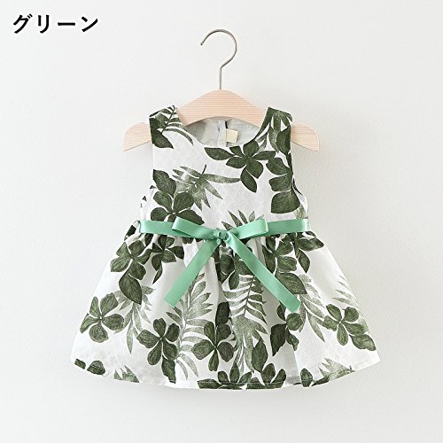 Plus Nao(プラスナオ) ノースリーブワンピース フレアワンピース ミニワンピース 子供ドレス キッズドレス 子供服 ベビー服 女の子 女児 キ グリーン 100