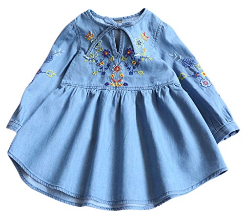 Plus Nao(プラスナオ) 子供用 ワンピース 長袖 カジュアル キッズ ジュニア 子ども 子供 服 女の子 女児 花 小花柄 花柄 刺繍 白 かわいい ブルー 130