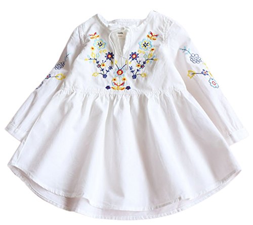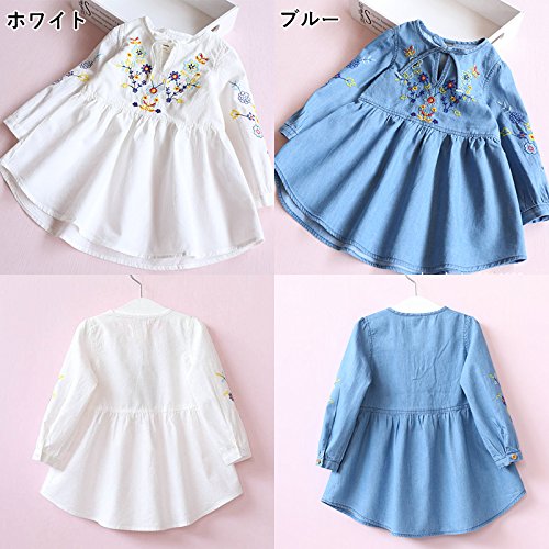 子供用 ワンピース 長袖 カジュアル キッズ ジュニア 子ども 子供 服 女の子 女児 花 小花柄 花柄 刺繍 白 かわいい 可愛い おしゃれ 100~140