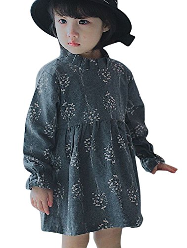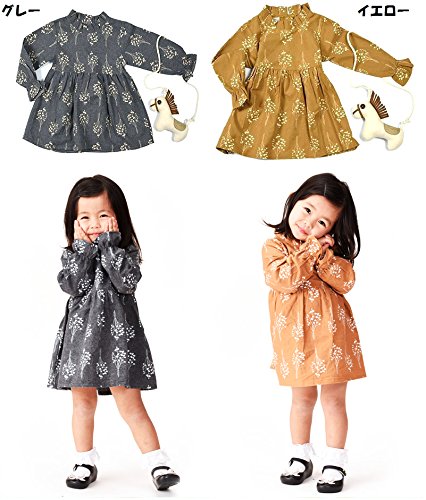 Plus Nao(プラスナオ) 子ども用 ワンピース 長袖 膝上 ミニ丈 ショート丈 フレアスカート Aライン 背中ボタン クルーネック 袖口フレア プ グレー 120