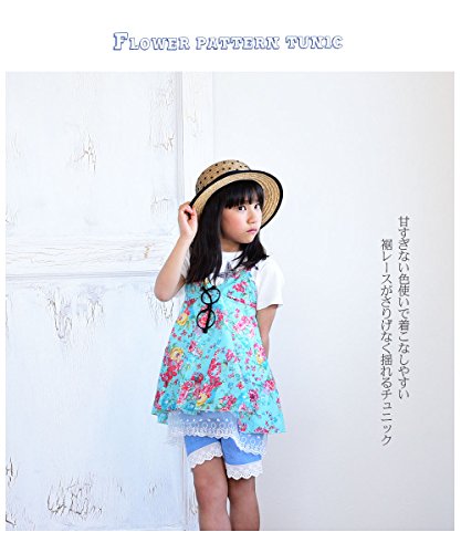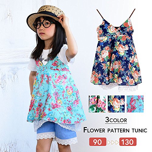 キュートなフラワープリント キッズ用キャミソールタイプのチュニックワンピースです。(サイズについて)画像をご参照ください。(素材について)綿、ポリエステル、ナイロン