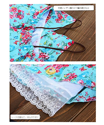 Plus Nao(プラスナオ) キャミソールチュニック ワンピ―スチュニック 子供用 Aライン フレアスカート レース 革ひも 春 夏 吊りワンピース ライトグリーン 110cm