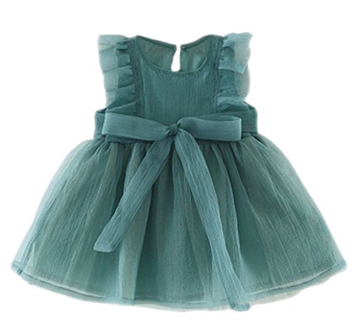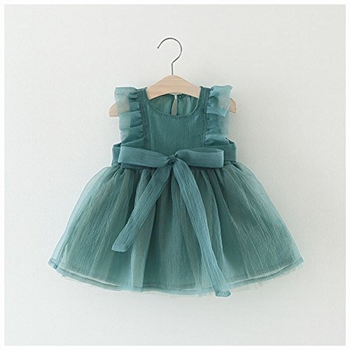Plus Nao(プラスナオ) ノースリーブワンピース フレアワンピース ミニワンピース 子供服 女の子 キッズ シンプル 無地 リボン 夏 フリル 70 グリーン 80
