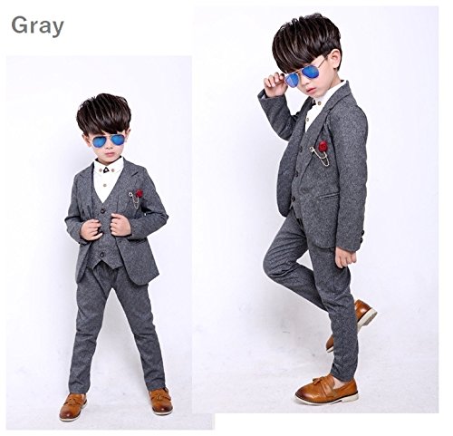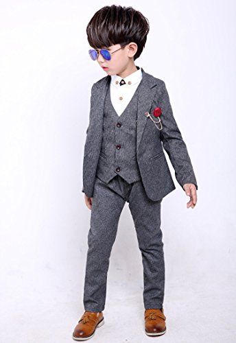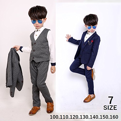 Plus Nao(プラスナオ) 子供用 セレモニースーツ フォーマルスーツ 4点セット ジャケット パンツ ベスト シャツ 入園式 入学式 卒園式 卒業 グレー 120