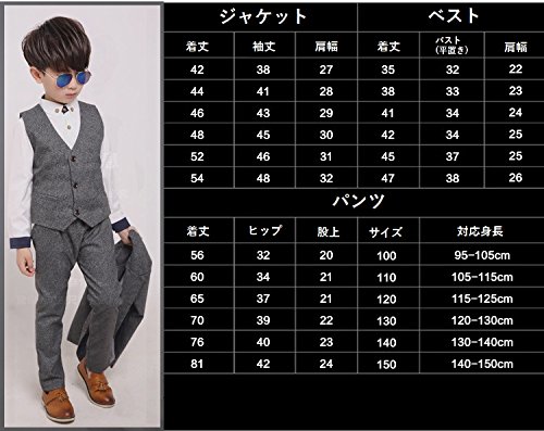 キッズからジュニア用セレモニースーツ4点セット セット内容:ジャケット、ベスト、シャツ、パンツ 入学式や卒業式だけでは、もったいない。 セットだと着る機会がなかなかありませんが 単品使いだとカジュアルなスタイルにもよく合います。 ジーンズやチノパンに合わせたり、 ニットとジャケットを組み合わせると大人っぽく着こなせます。 (サイズについて)画像をご参照ください(素材について)コットン、ポリエステル