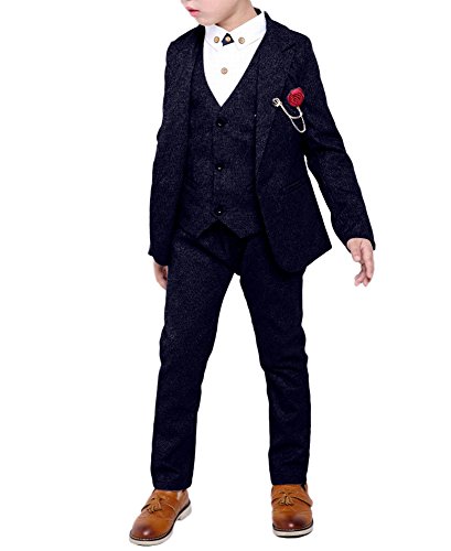 Plus Nao(プラスナオ) 子供用 セレモニースーツ フォーマルスーツ 4点セット ジャケット パンツ ベスト シャツ 入園式 入学式 卒園式 卒業 ネイビー 130