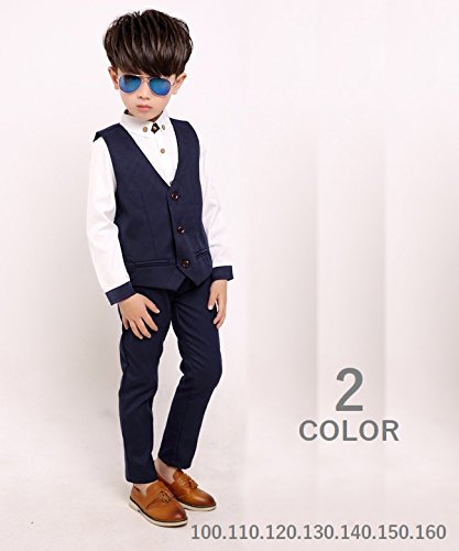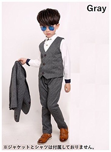 Plus Nao(プラスナオ) 子供用 セレモニースーツ セットアップ 2点セット パンツ×ベスト 入園式 入学式 卒園式 卒業式 七五三 男の子 キッズ ジュニア 100 110 120 130 140 150 160 グレー 120