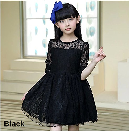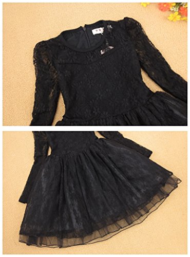 Plus Nao(プラスナオ) 子供用 大人用 ドレス ミニワンピース フォーマル プリンセスライン 長袖 総レース チュール 卒業式 卒園式 入園式 入学式 結婚式 発表会 110 120 130 140 150 160 170 発表会 七五三 ブラック 170