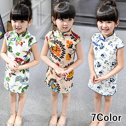 花柄の可愛いチャイナ服・パーティーシーンにもお勧めの一枚です♪(サイズについて)(7) 着丈49 胸囲28 肩幅24 適応身長80 (9) 着丈51 胸囲30 肩幅25 適応身長90 (11) 着丈55 胸囲32 肩幅26 適応身長100 (13) 着丈58 胸囲33 肩幅27 適応身長110 (15) 着丈62 胸囲35 肩幅28 適応身長120 (単位:約cm)(素材について)綿混