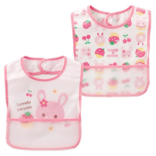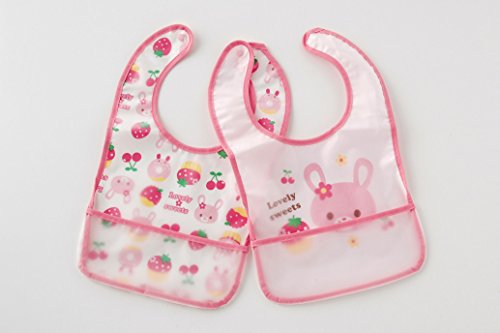 Plus Nao(プラスナオ) スタイ よだれかけ バンダナ ビブ よだれカバー エプロン 2枚組 セット Fario ファリオ ベビー お食事 お食事エプロン 女の子 ピンク アニマル ウサギ フルーツ いちご イラスト プリント マルチプリント マジックテープ マジックスタイ - -