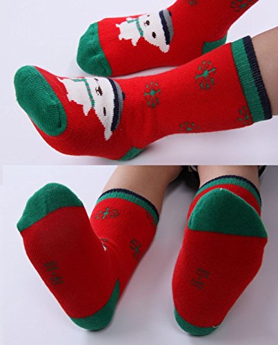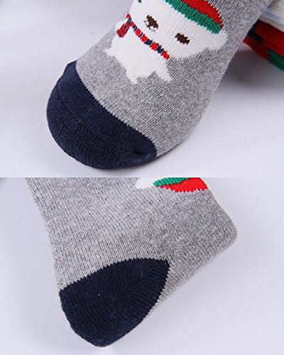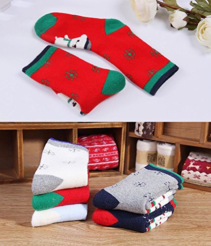 Plus Nao(プラスナオ) 子供用 ソックス 靴下 ジュニアソックス ジュニア靴下 子供靴下 くま 雪柄 全5色 女の子 男の子 3歳-8歳 肌着 下着 くつ下 ジュニア 子供 5-8歳 レッド