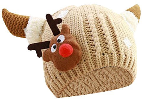 ベビーニット帽・トナカイ&雪モチーフ・ツノ付き・クリスマス・子供・男女兼用・防寒