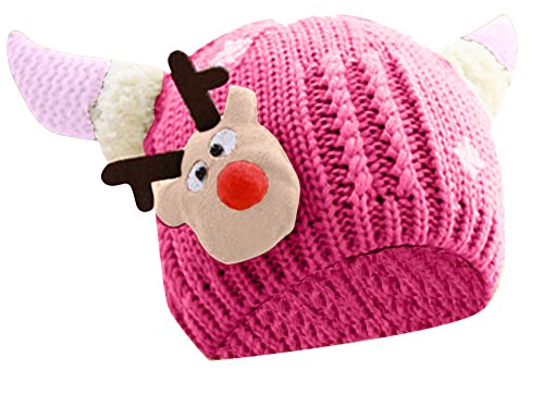 ベビーニット帽・トナカイ&雪モチーフ・ツノ付き・クリスマス・子供・男女兼用・防寒
