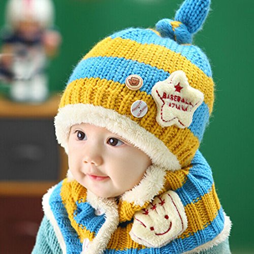 子供用ニット帽+マフラー・ボタン付きネックウォーマー・ニットキャップ・キッズ・ベビー・子ども・男の子・女の子・男女兼用・幼児・Kids 秋 冬 かわいい