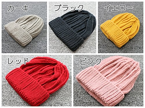 Plus Nao(プラスナオ) ニット帽 ニット帽子 ニットキャップ ビーニー キッズ帽子 子供用 KIDS シンプル 無地 定番 カジュアル 秋冬 ファッション小物 防寒対策 暖かい - カーキ
