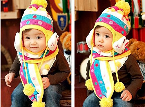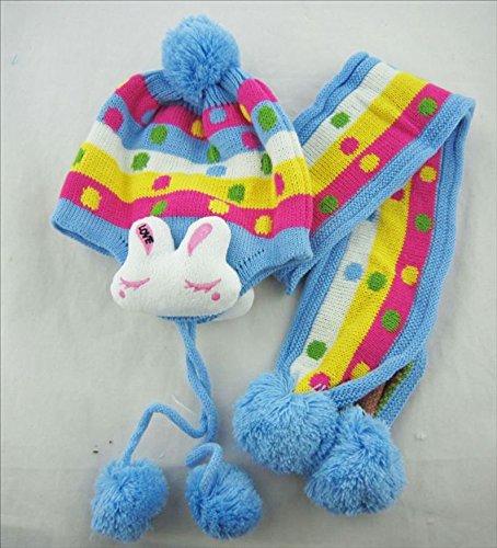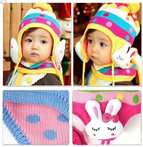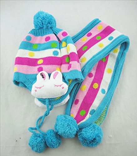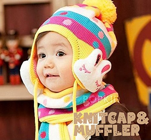 ウサギのマスコットが可愛いニット帽とマフラーのセットです(サイズについて)3歳ぐらいまでのお子様用です