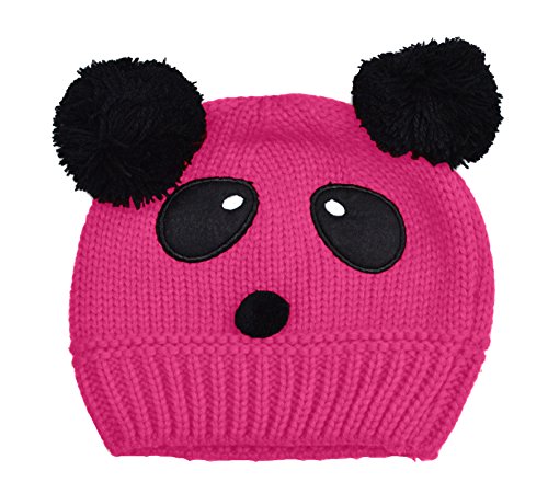 Plus Nao(プラスナオ) 子供用 帽子 ニット帽 ビーニー ニットキャップ パンダデザイン ボンボン付き 赤ちゃん ベビー キッズ 男の子 女の子 - ローズ