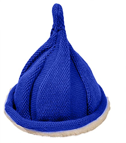 Plus Nao(プラスナオ) あったかボア入りニット帽 キッズ とんがり くるくる つんつん 帽子 男の子 女の子 ベビー 防寒 BOY GIRL 赤ちゃん KID ブルー