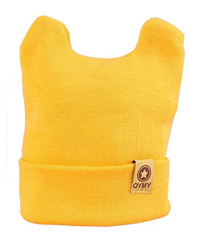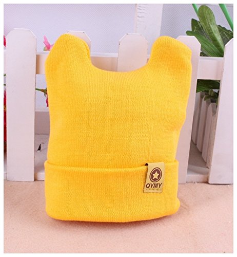 Plus Nao(プラスナオ) 子供用 ベビー用 ニット帽 ニットキャップ 耳付き シンプル 無地 タグデザイン ベビー キッズ 女の子 男の子 冬帽子 - イエロー