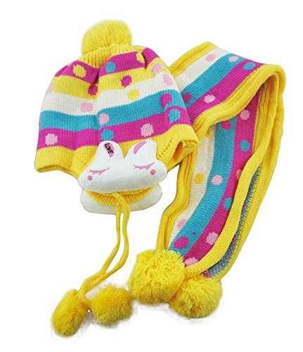 ウサギのマスコットが可愛いニット帽とマフラーのセットです(サイズについて)3歳ぐらいまでのお子様用です