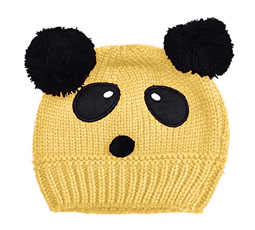Plus Nao(プラスナオ) 子供用 帽子 ニット帽 ビーニー ニットキャップ パンダデザイン ボンボン付き 赤ちゃん ベビー キッズ 男の子 女の子 冬帽子 バイカラー - イエロー