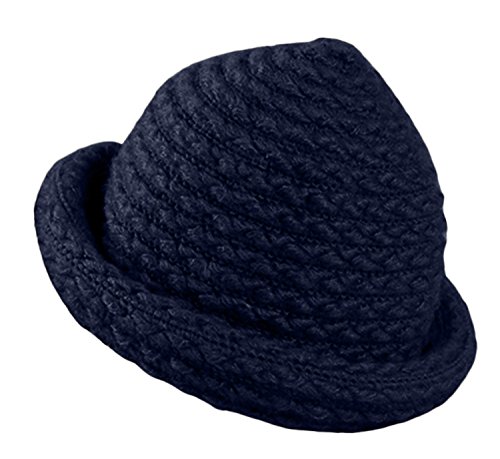 Plus Nao(プラスナオ) 子供用 ニット帽 ニットハット つば付きニット帽 ニットキャップ ざっくり編み 手編み風 キッズ ジュニア シンプル - ネイビー