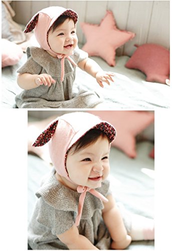 Plus Nao(プラスナオ) 赤ちゃん用帽子 ベビー帽子 ボンネット 耳つき つば付き 顎ひも付き ベビー 赤ちゃん 女の子 男の子 - ピンク