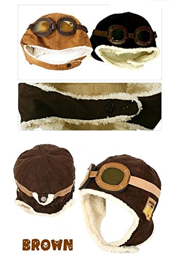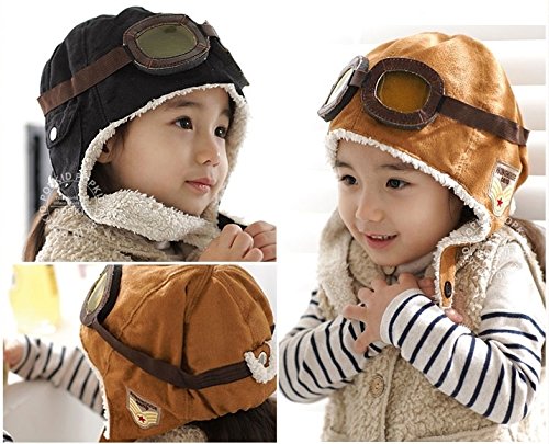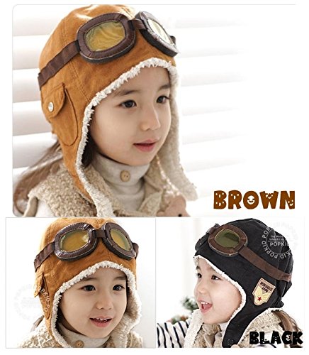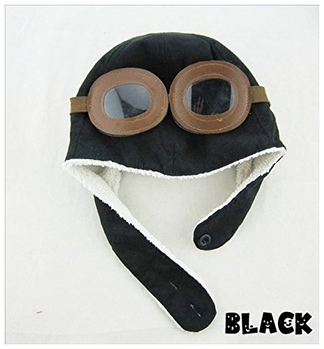 Plus Nao(プラスナオ) 子供用 フライトキャップ パイロットキャップ フライヤーズハット 耳あて&ゴーグル付き 裏ボア 帽子 かわいい あっ - ブラック