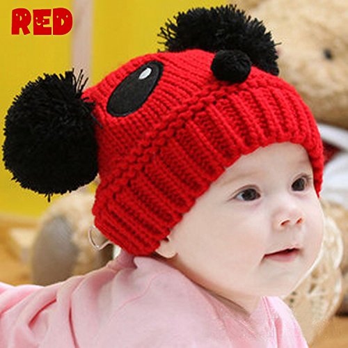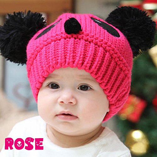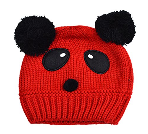 子供用 帽子 ニット帽 ビーニー ニットキャップ パンダデザイン ボンボン付き 赤ちゃん ベビー キッズ 男の子 女の子 冬帽子 バイカラー