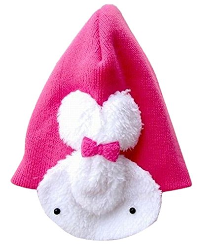 Plus Nao(プラスナオ) 子供用 帽子 ニット帽 ウサギの耳あて付き ニットキャップ ビーニー 赤ちゃん ベビー キッズ 男の子 女の子 冬帽子 - ローズ