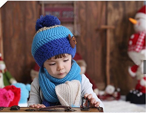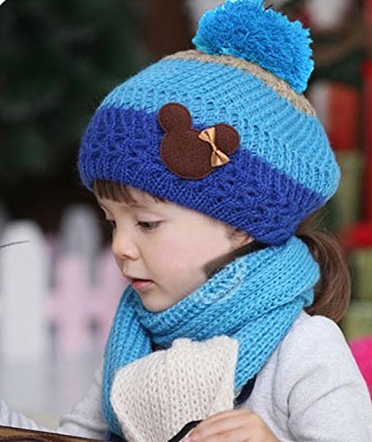 子供用 ニット帽&マフラー 2点セット セットアップ くまさん付き ボンボン付き ボーダー バイカラー ビーニー ベビー キッズ 女の子 男の子 冬帽子