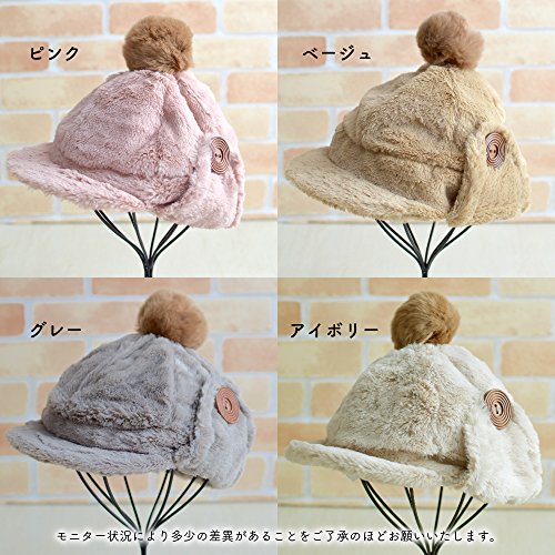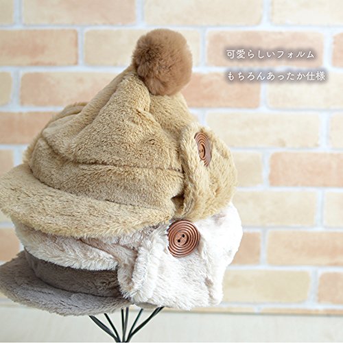 Plus Nao(プラスナオ) なめらか手触りポンポン付裏側フリース耳あて帽子 キッズ キャップ 女の子 男の子 ジュニアサイズ キャップ 子供用 お洒落 防寒 オシャレ キッズ帽子 子供用帽子 耳あて付キャップ帽 - アイボリー