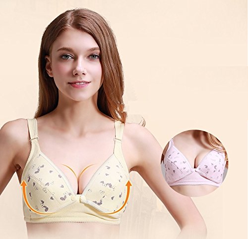 Plus Nao(プラスナオ) 授乳ブラジャー 授乳ブラ 前あき ホック式 ハートプリント マタニティブラジャー ママ 産後 インナー ブラジャー単品 ピンク 80C