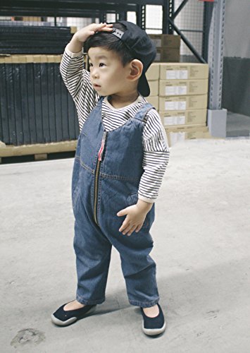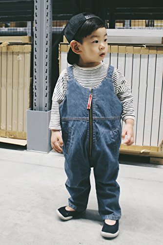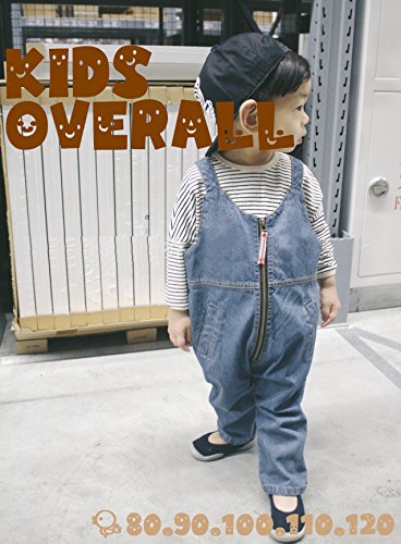 Plus Nao(プラスナオ) 子供用 デニム オーバーオール ジップアップ ロングパンツ つなぎ 男の子 女の子 ベビー キッズ コットン 80 90 100 110 120 - 110