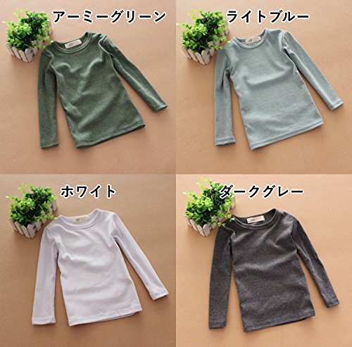 Plus Nao(プラスナオ) 長袖カットソー Tシャツ ロンT トップス 子供服 キッズ KIDS シンプル 無地 定番 ベーシック ラウンドネック クルーネック カジュアル 男女兼用 男児 女児 男の子 女の子 100cm 110cm 120cm 130cm 140cm 100cm アーミーグリーン