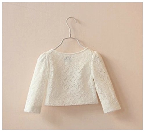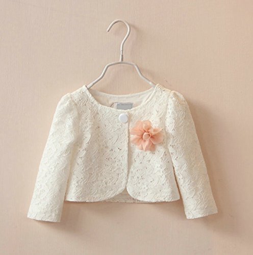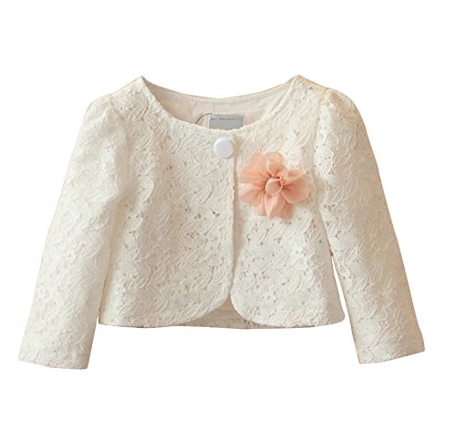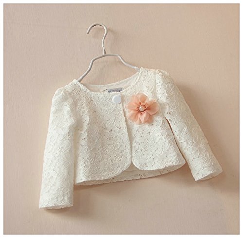 Plus Nao(プラスナオ) 子供用 ボレロ ノーカラージャケット ショート丈 コサージュ付き 長袖 総レース 卒業式 卒園式 入園式 入学式 結婚式 ホワイト 110
