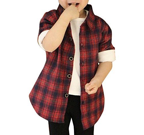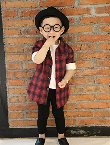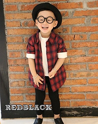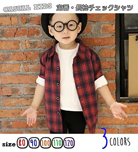Plus Nao(プラスナオ) チェックシャツ 長袖シャツ トップス チェック柄 ブラウス 羽織り 子供服 こども服 キッズ KIDS ベビー服 ベビーウェア BABY 男の子 女の子 定番 カジュアル 80 90 100 110 120 レッドブラック 90cm