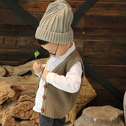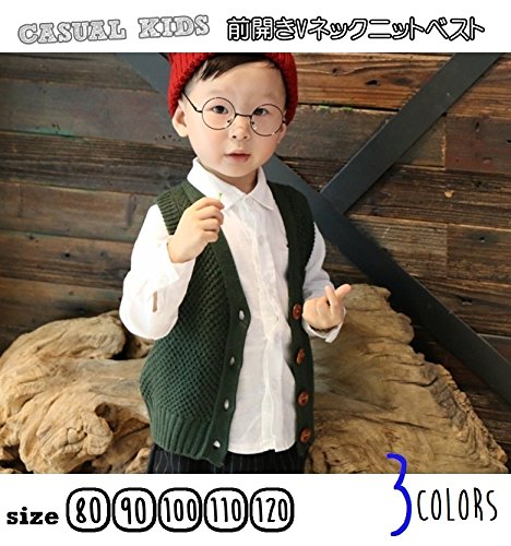 シンプルな前開きニットベストは合わせ易い万能アイテムです。(サイズについて)80サイズ~120サイズの5種類
