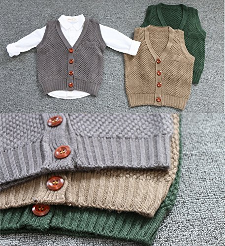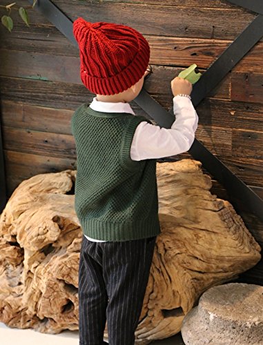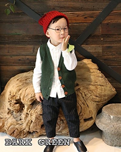 Plus Nao(プラスナオ) ニットベスト ジレ 前開き Vネック 無地 シンプル 羽織り トップス 子供服 こども服 キッズ KIDS ベビーウェア ベビ ダークグリーン 90cm