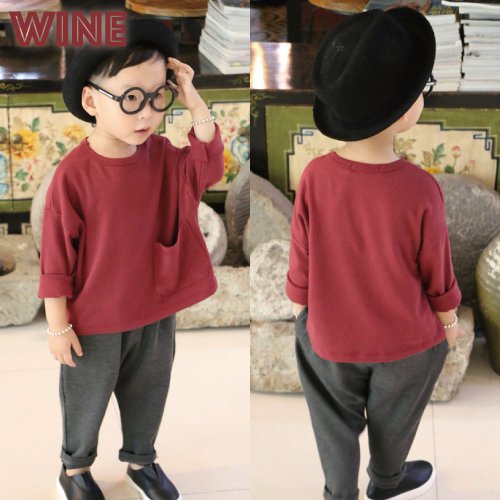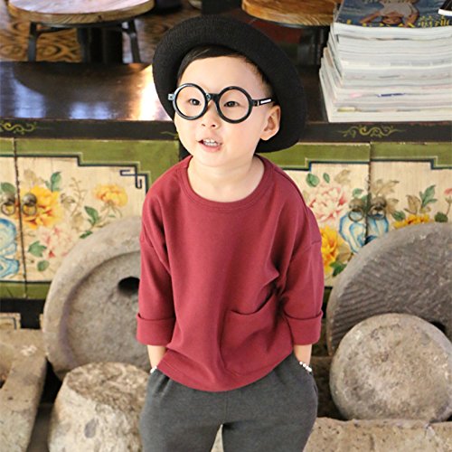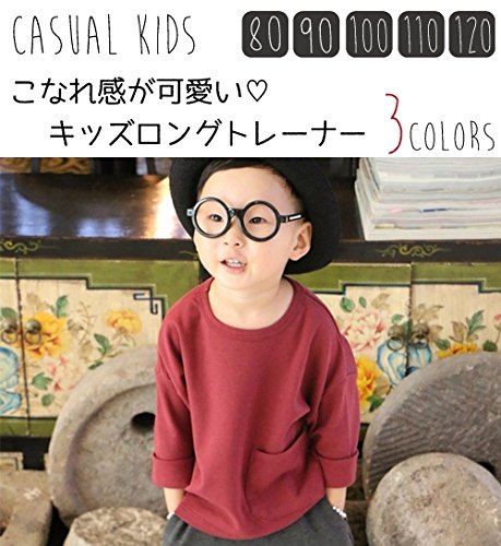 Plus Nao(プラスナオ) こなれ感でくすみカラーが可愛いめちゃ伸び素材のキッズ トレーナー スウェット 韓国子供服 無地 トップス クルーネック シンプル 大人っぽい オーバーサイズ 秋冬 流行 長袖 80 90 100 110 120 90 ワイン